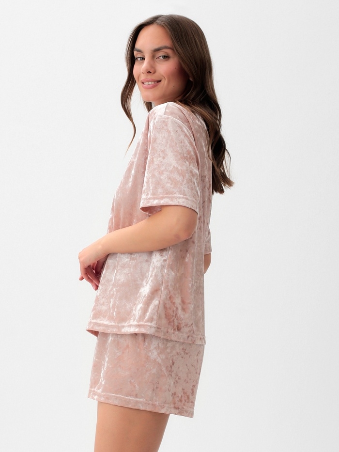 Костюм женский (футболка и шорты) KAFTAN "Бархат", р. 40-42, розовый