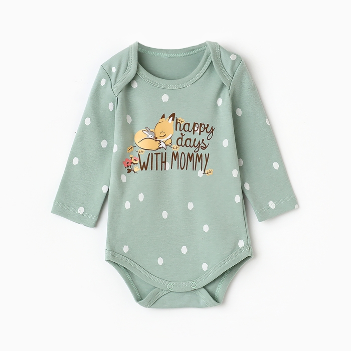 Боди детское с длинным рукавом "Лисичка", цвет ментол, рост 74