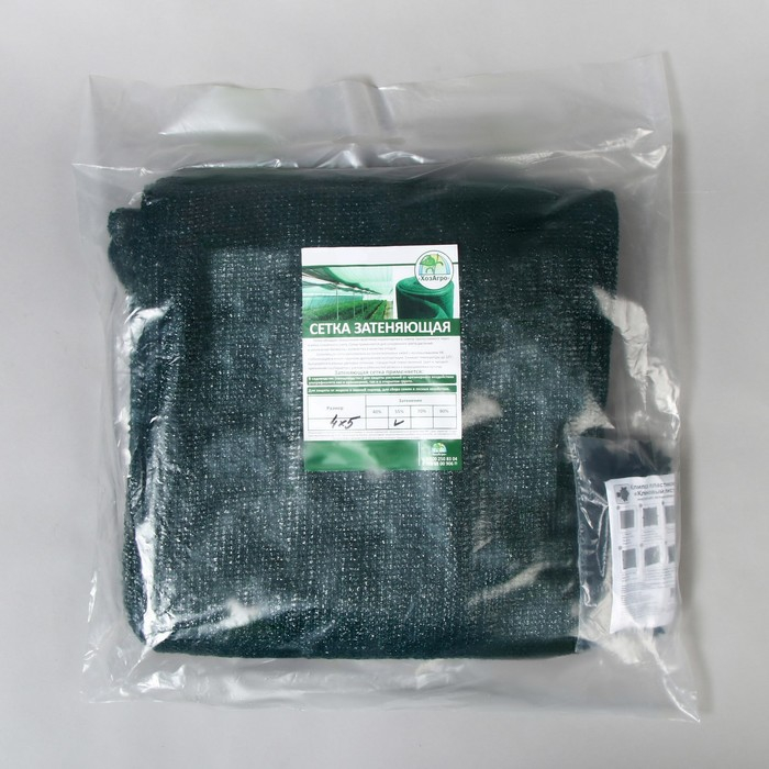 Сетка затеняющая, 5 × 4 м, плотность 55 г/м², зелёная, в наборе 19 клипс