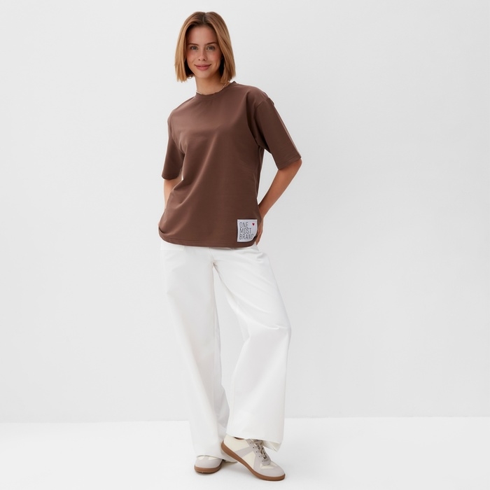 Футболка женская однотонная MINAKU: One Most Brand цвет коричневый, размер 44