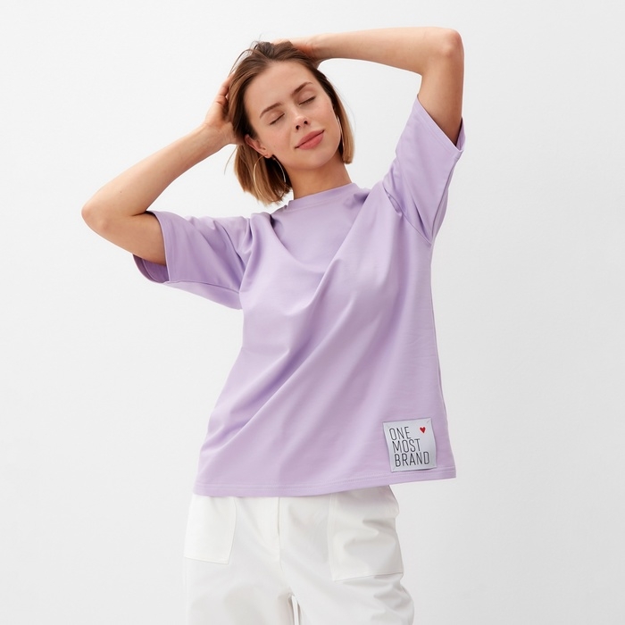 Футболка женская оверсайз MINAKU: One Most Brand цвет сиреневый, размер 48