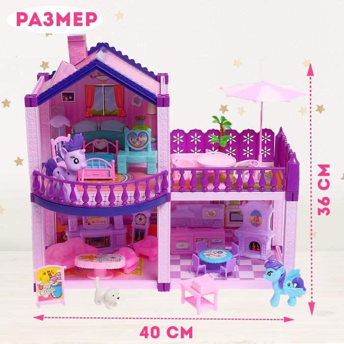 Размер дома: 40 × 22 × 36 см. Подходит для кукол до 10 см.