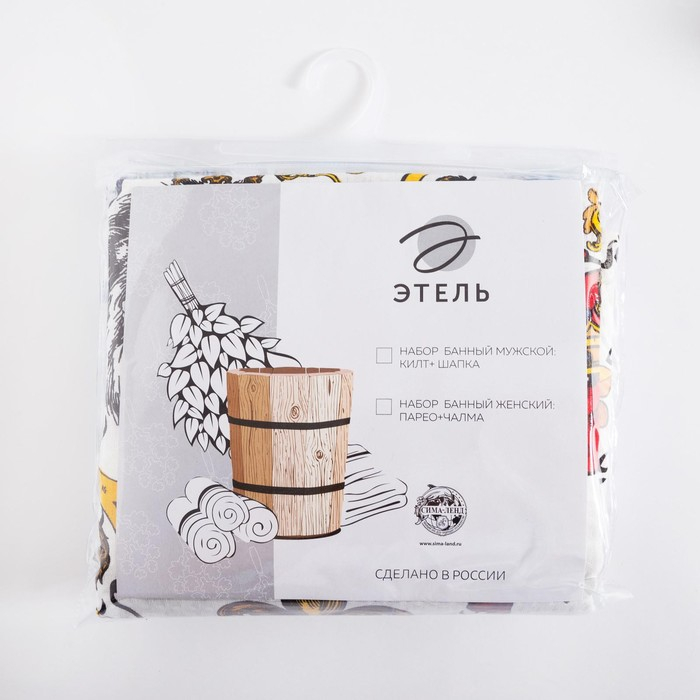 Набор для сауны Этель "Настоящий мужчина" килт 75*144 см + шапка, вафля 200г/м2, 100% хл