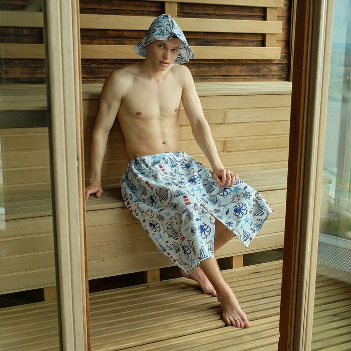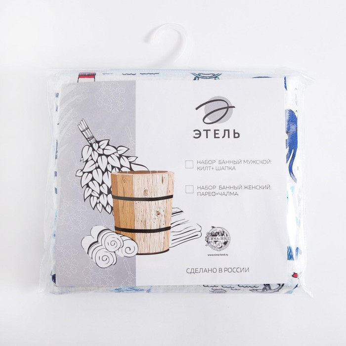 Набор для сауны Этель "Капитан" килт 75*144 см + шапка, вафля 200г/м2, 100% хл