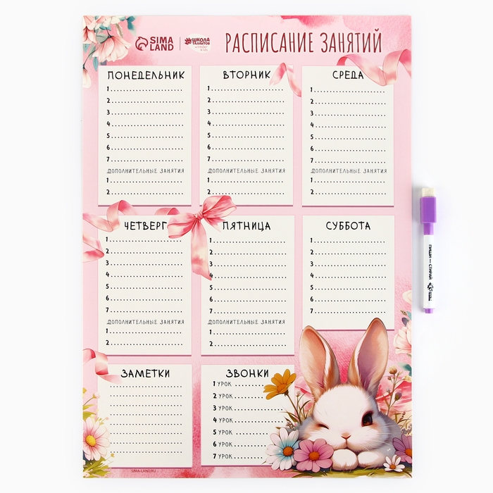 Магнитное расписание уроков многоразовое «Милый зайка», А3, с маркером