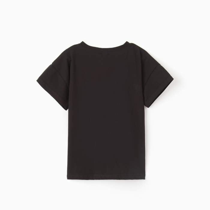 Футболка детская со спущенным плечом, цвет чёрный, рост 134 см