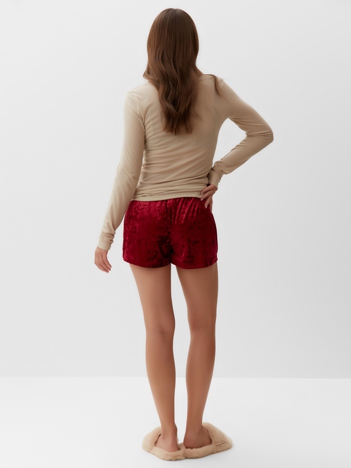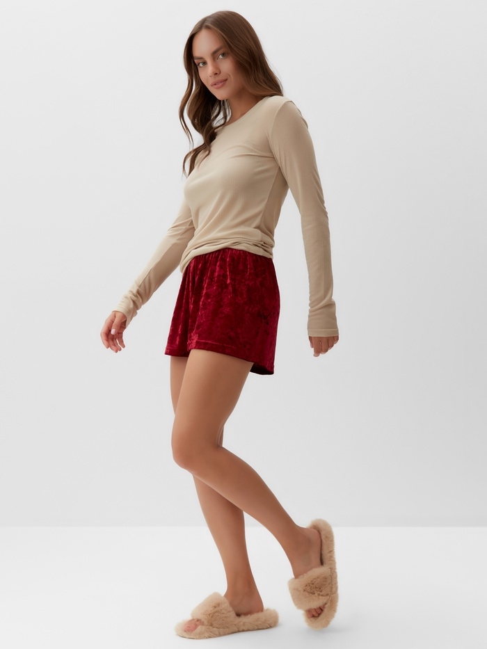 Комплект женский домашний (лонгслив и шорты) KAFTAN "Бархат", 48-50, бордо/беж