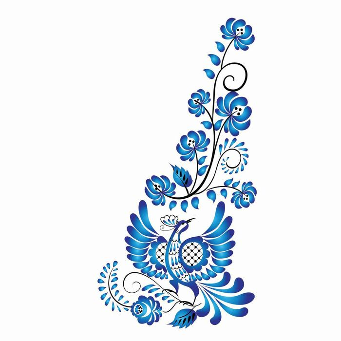 Термотрансфер «Гжель птица», уголок слева, 20 х 35 см, набор 10 шт.