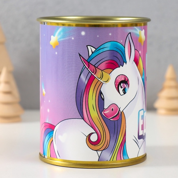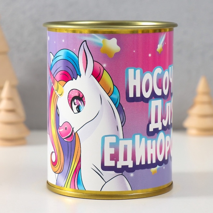 Подарочные носки с принтом в банке «Для единорожки», (внутри носки женские)