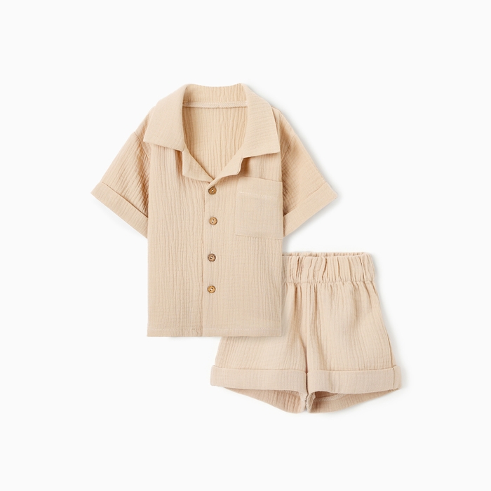 Костюм детский (рубашка и шорты) Крошка Я , р. 68-74, бежевый