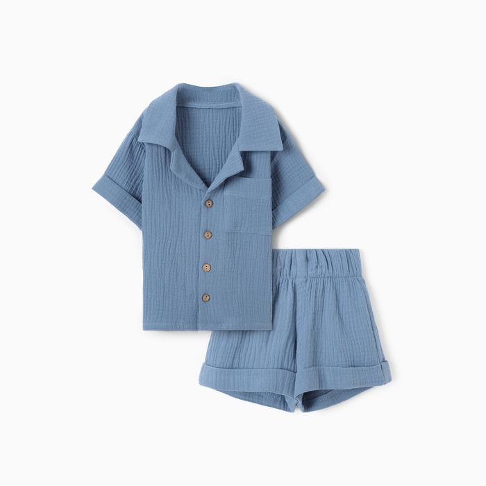 Костюм детский (рубашка и шорты) Крошка Я , р. 68-74, синий