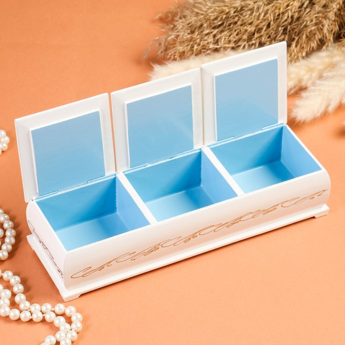 Шкатулка тройная, белая, лаковая миниатюра