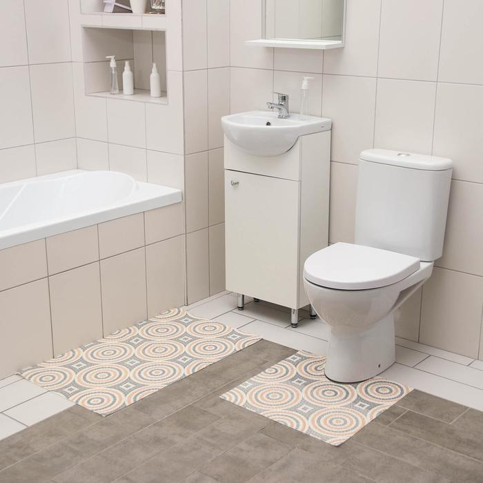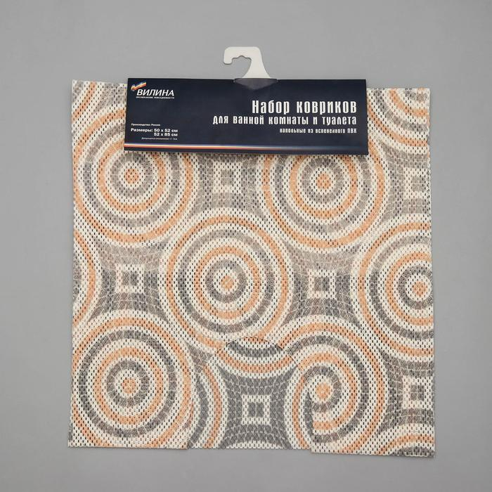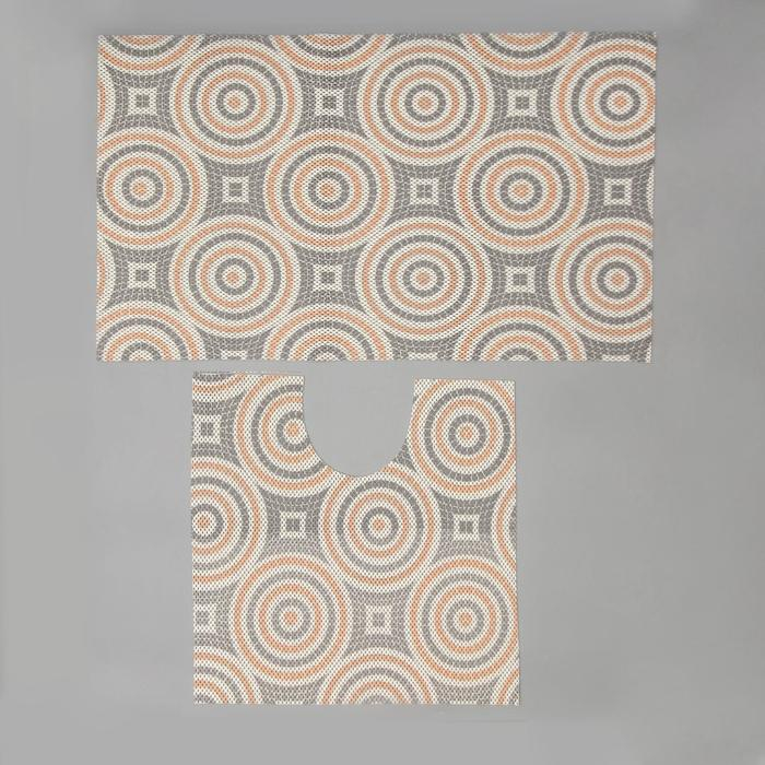 Набор ковриков для ванны и туалета Вилина «Круги», 2 шт: 50×52, 50×85 см