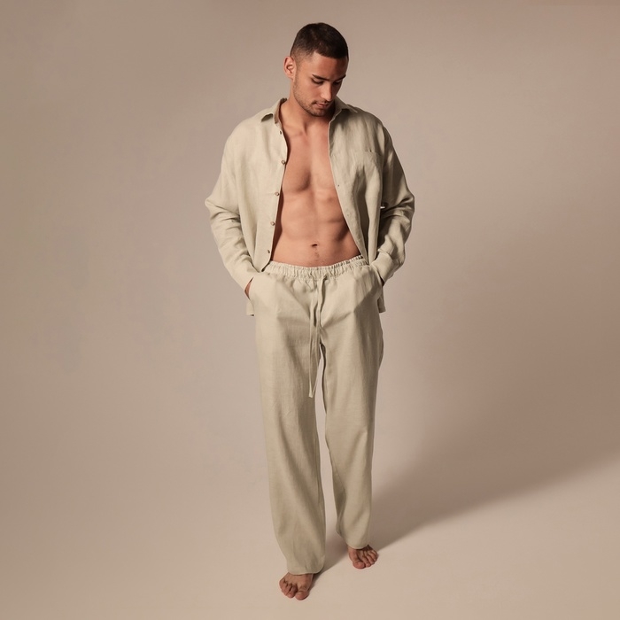 Костюм мужской домашний (рубашка с длинным рукавом и брюки) SL HOME р. S, светло-зеленый