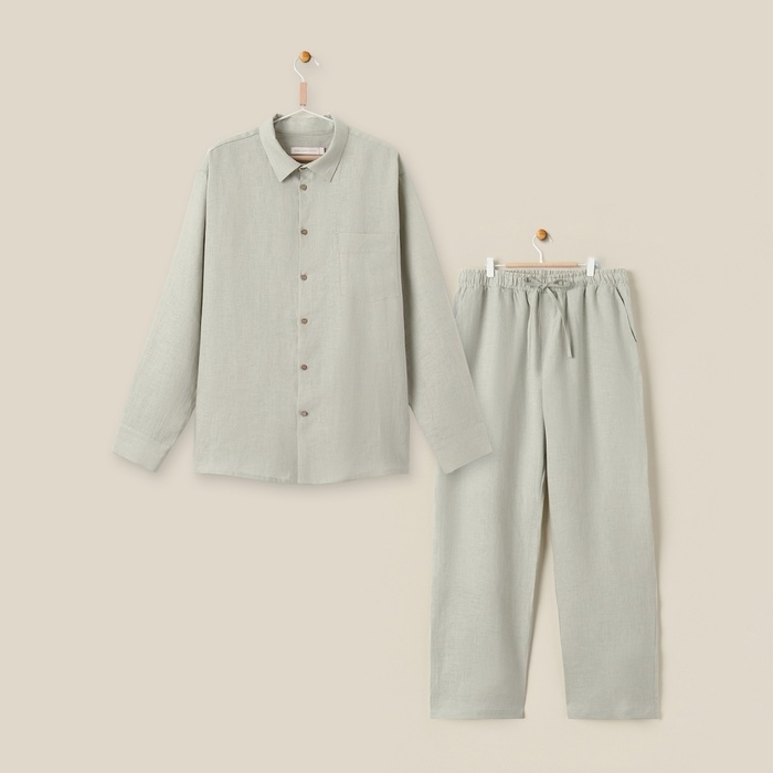Костюм мужской домашний (рубашка с длинным рукавом и брюки) SL HOME р. XL, светло-зеленый