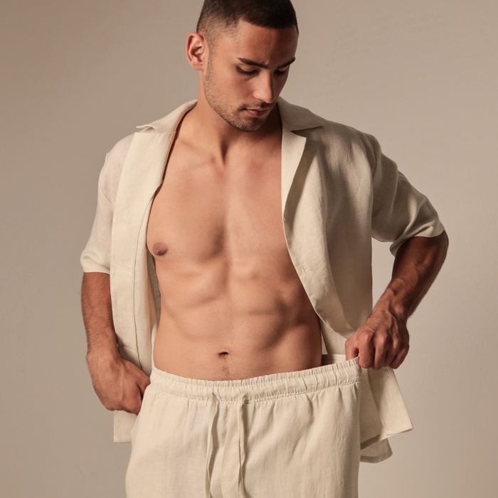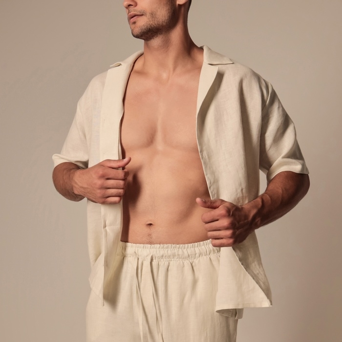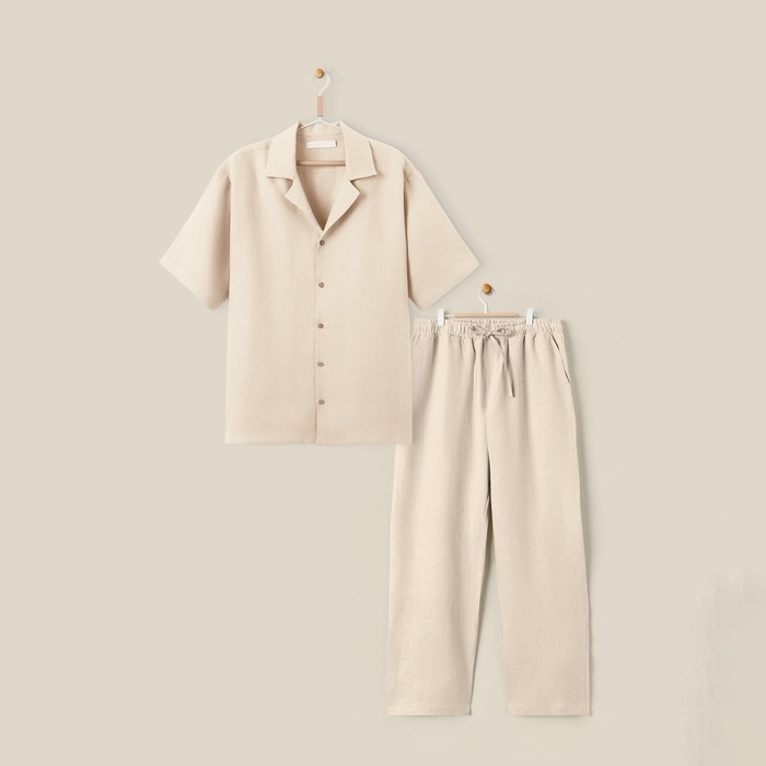 Костюм мужской домашний (рубашка с коротким рукавом и брюки) SL HOME р. M, молочный