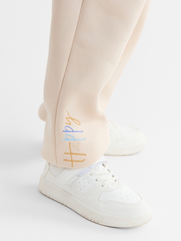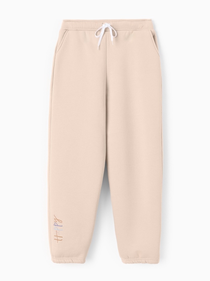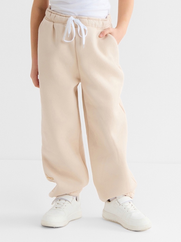 Брюки для девочки с начёсом MINAKU: Exclusive print, бежевые, Oversize рост 110 см