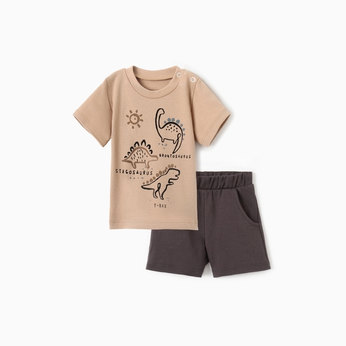 Костюм: футболка и шорты Крошка Я Dino, рост 62-68 см, бежевый/серый