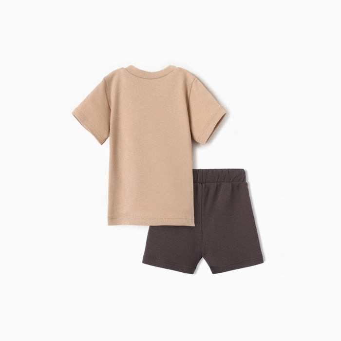 Костюм: футболка и шорты Крошка Я Dino, рост 68-74 см, бежевый/серый