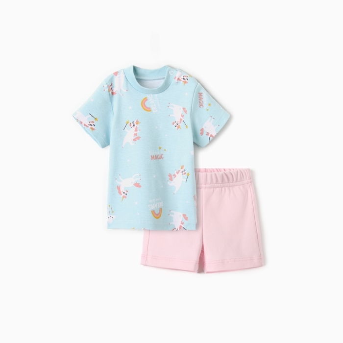 Костюм: футболка и шорты Крошка Я Unicorn, рост 68-74 см