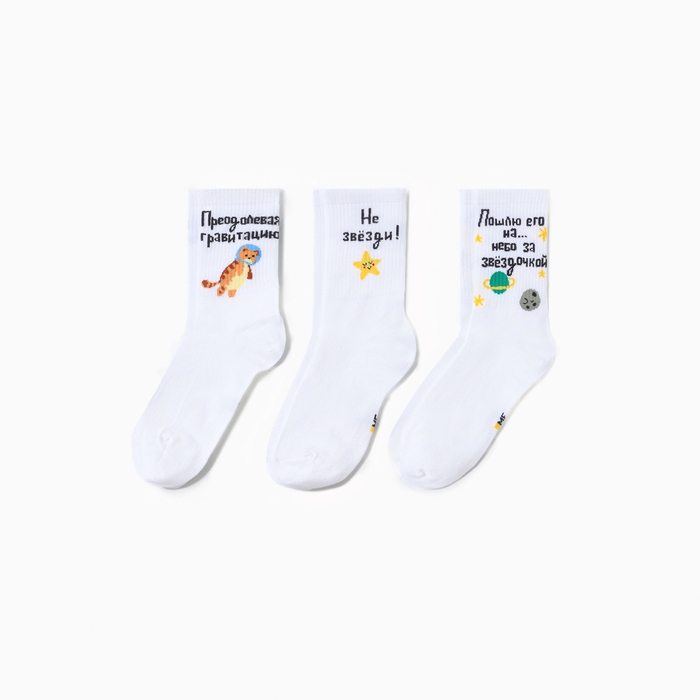 Набор женских носков (3 пары), цвет белый, р-р 23-25