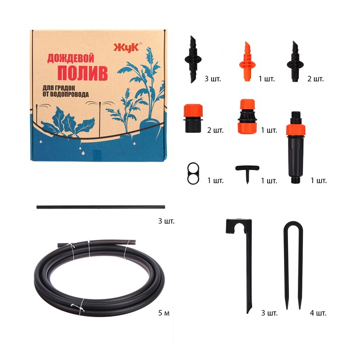 Набор дождевого полива грядок от водопровода, на 1 грядку, «Жук»