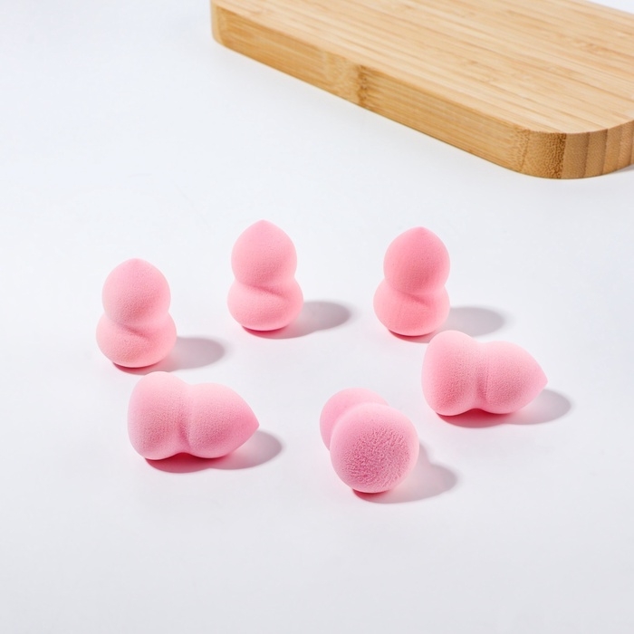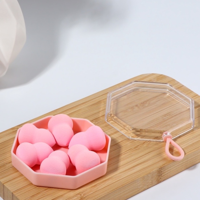 Спонжи для макияжа, набор - 5 шт, увеличиваются при намокании, цвет розовый