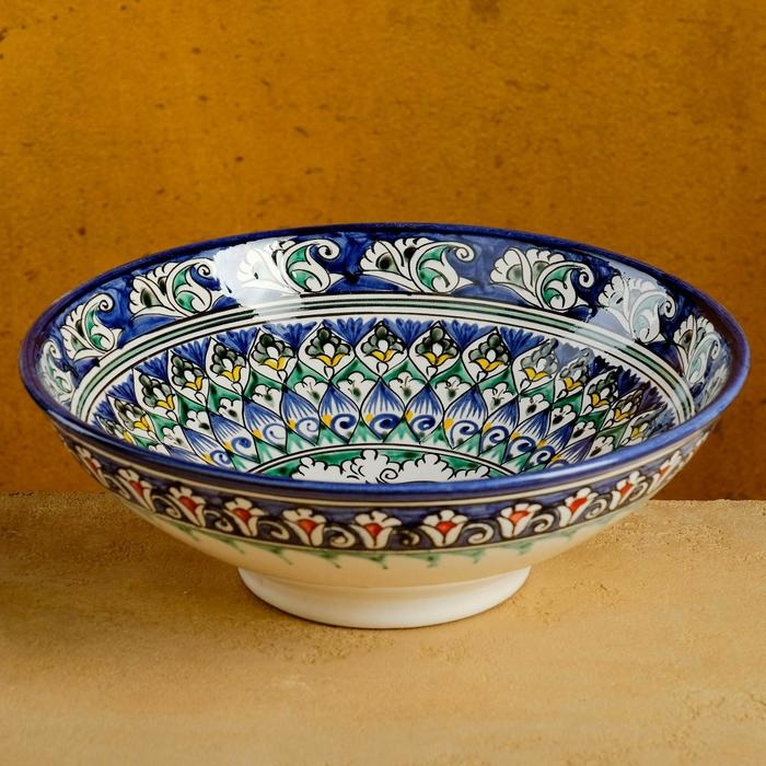 Супница Риштанская Керамика "Цветы", 25 см, синяя