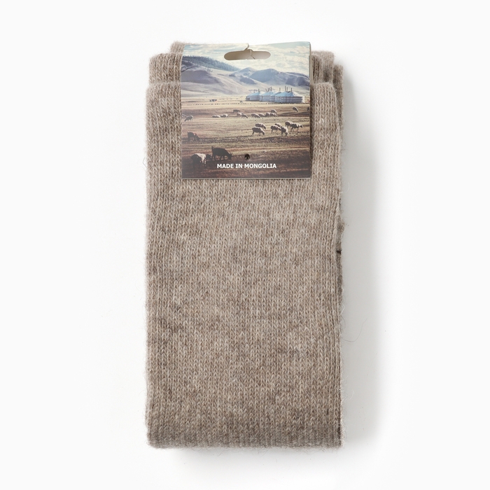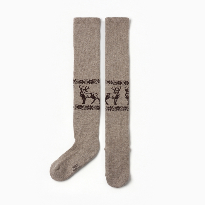 Чулки женские из монгольской шерсти "Олень" цвет бежево-серый, размер 36-42