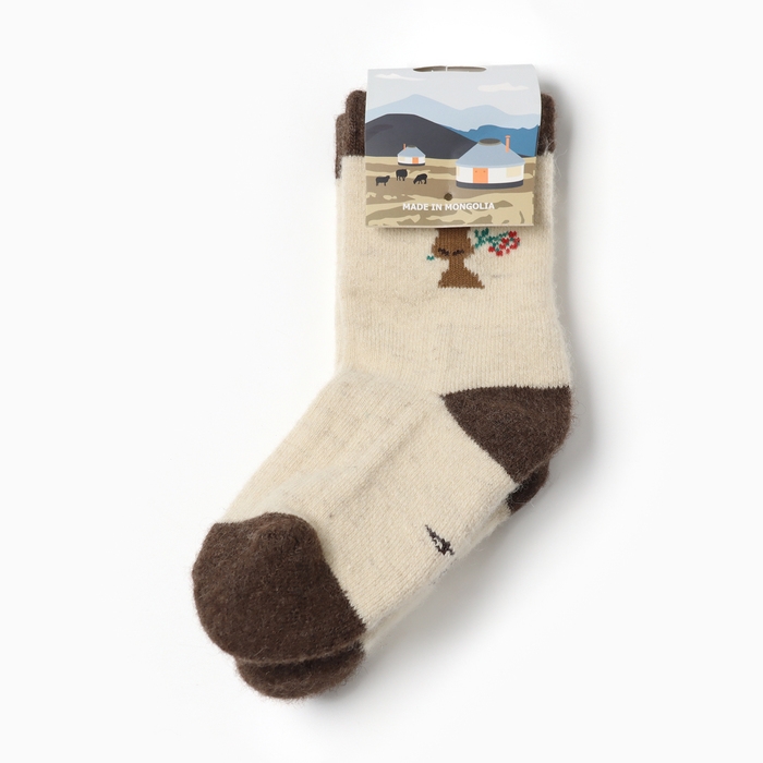 Носки детские из монгольской шерсти "Олень", цвет шоколадный, размер 14-16