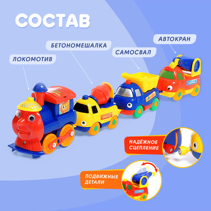 - Локомотивом с вагончиками можно играть отдельно от железнодорожного трека.