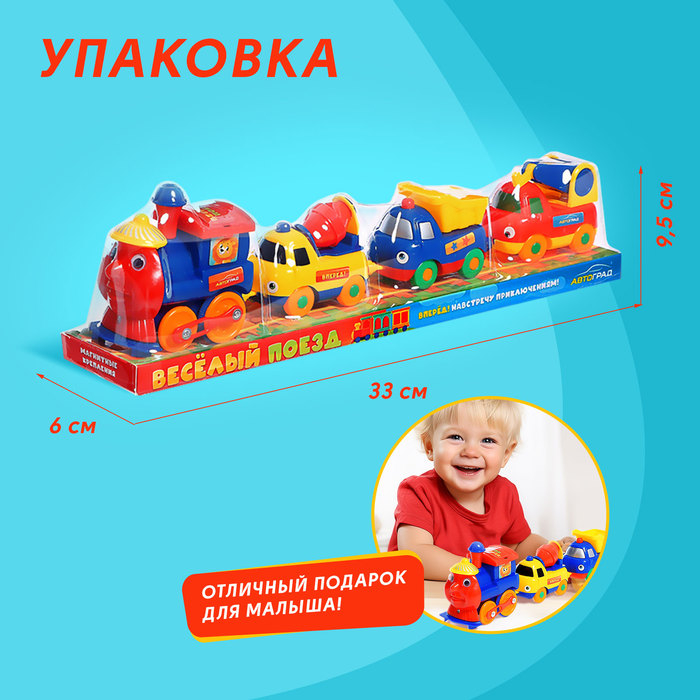 Паровозик «Забавное путешествие» — это отличный подарок для детей от 3 лет. Эта замечательная игрушка станет для малыша любимой благодаря яркому дизайну, а также подвижным и проработанным деталям. Магнитное сцепление позволит легко соединять вагоны между собой, создавая каждый раз новый поезд.