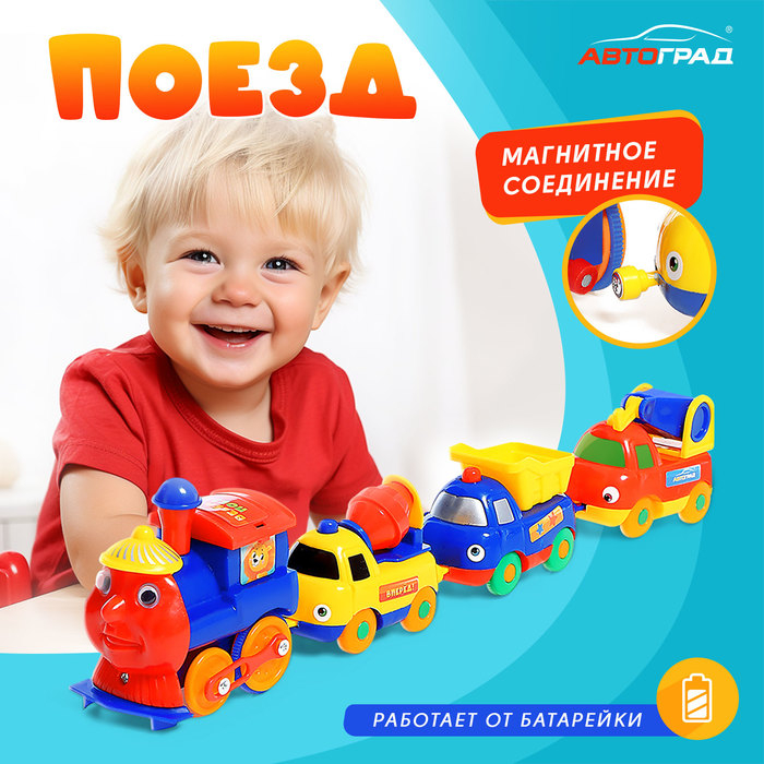 Железная дорога «Веселый поезд», магнитная сцепка, работает от батареек