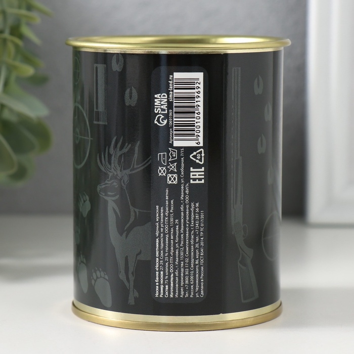Подарочные носки в банке «Охотника», (внутри носки мужские, цвет чёрный)
