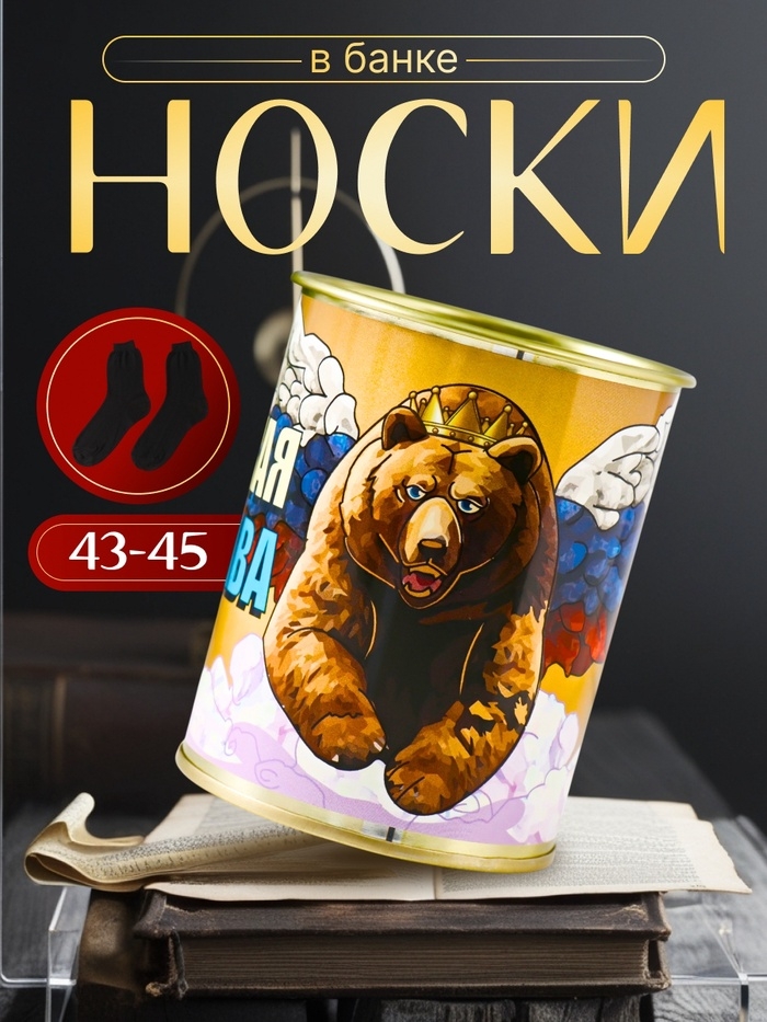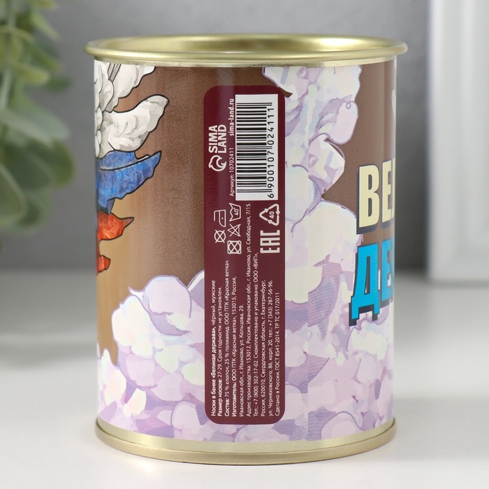 Подарочные носки в банке «Великая держава», (внутри носки мужские, цвет чёрный)