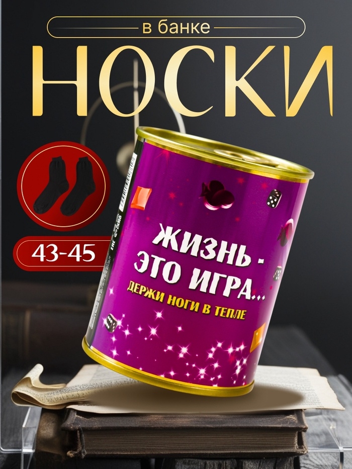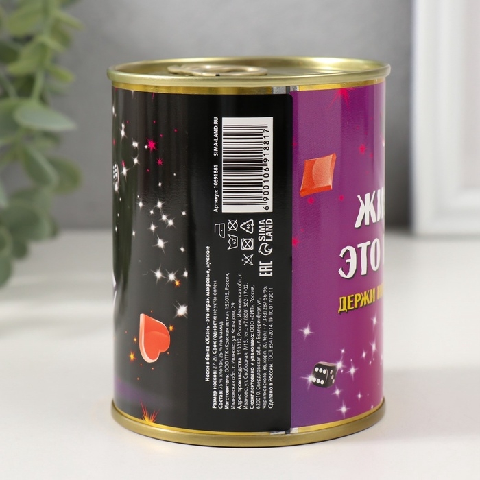 Подарочные носки в банке «Жизнь — это игра. Держи ноги в тепле», (внутри носки мужские махровые)