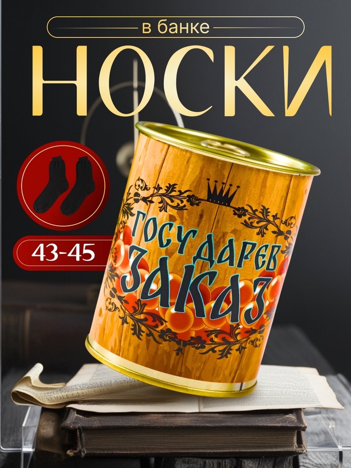 Подарочные носки в банке «Государев заказ», (внутри носки мужские, цвет чёрный)