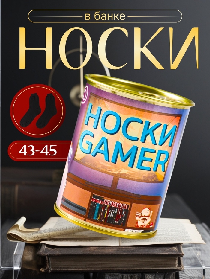 Подарочные носки в банке GAMER (внутри носки мужские, цвет чёрный)