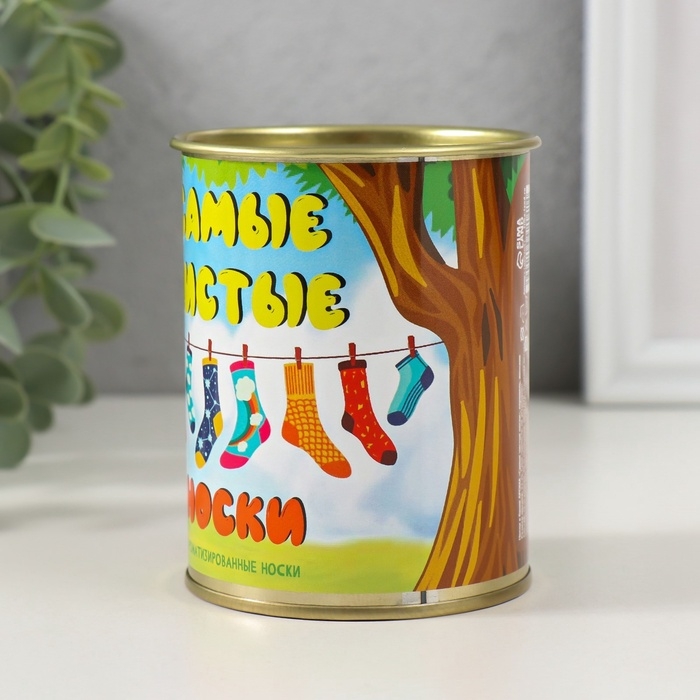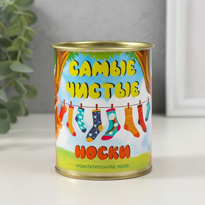Подарочные носки в банке «Самые чистые носки», (внутри ароматизированные носки женские, цвет белый), карамель