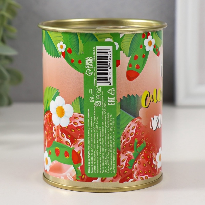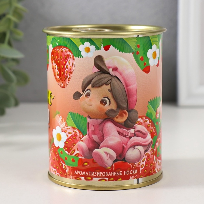 Подарочные носки в банке «На сладкую жизнь», (внутри ароматизированные носки женские, цвет белый), клубника