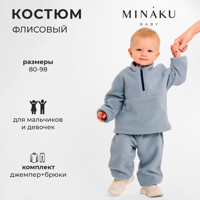 Костюм флисовый детский (джемпер и брюки) MINAKU цвет серый, рост 92-98 см