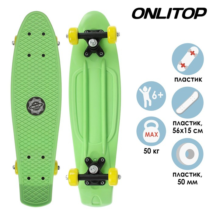 Пенниборд ONLITOP, 56х15 см, колёса PVC 50 мм, пластиковая рама, цвет салатовый