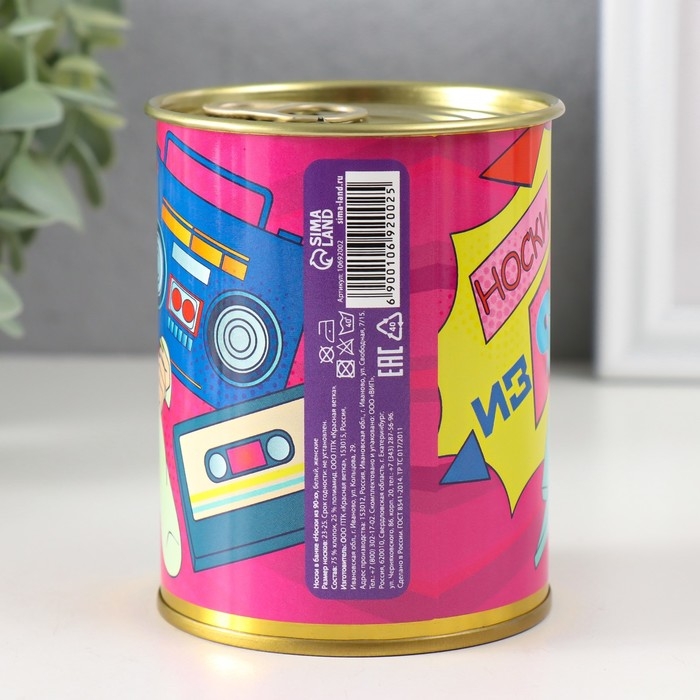 Подарочные носки в банке «Из 90-х», (внутри носки женские, цвет белый)