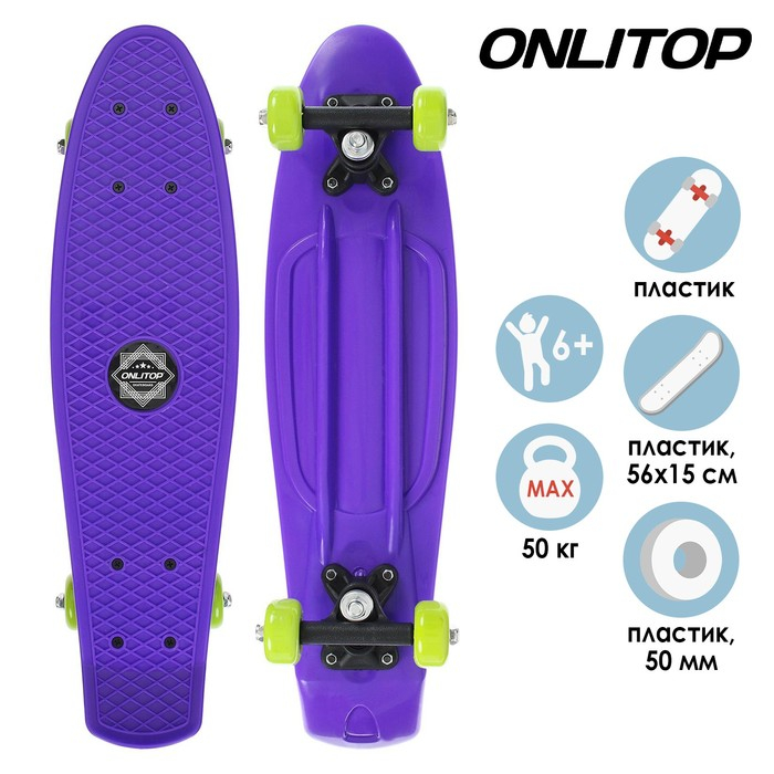 Пенниборд ONLITOP, 56х15 см, колёса PVC 50 мм, пластиковая рама, цвет фиолетовый