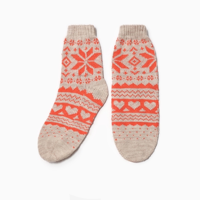 Носки женские новогодние шерстяные, цвет серый/оранжевый, размер 25-27