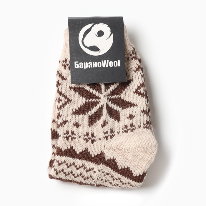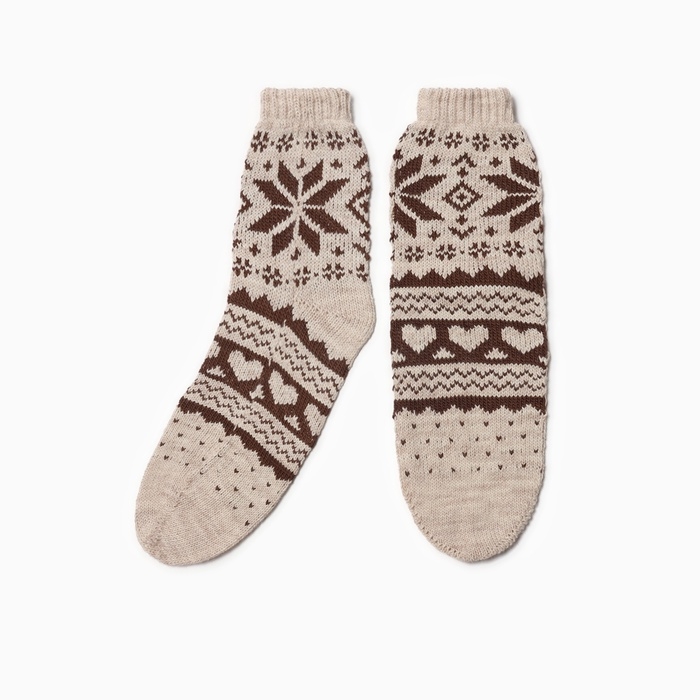 Носки женские новогодние шерстяные, цвет белый/коричневый, размер 25-27