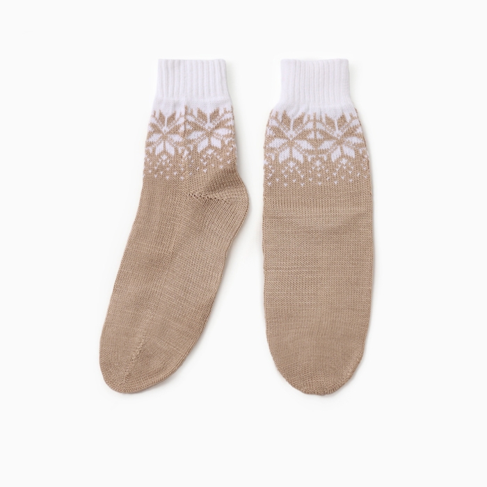 Носки женские новогодние шерстяные, цвет коричневый, размер 25-27