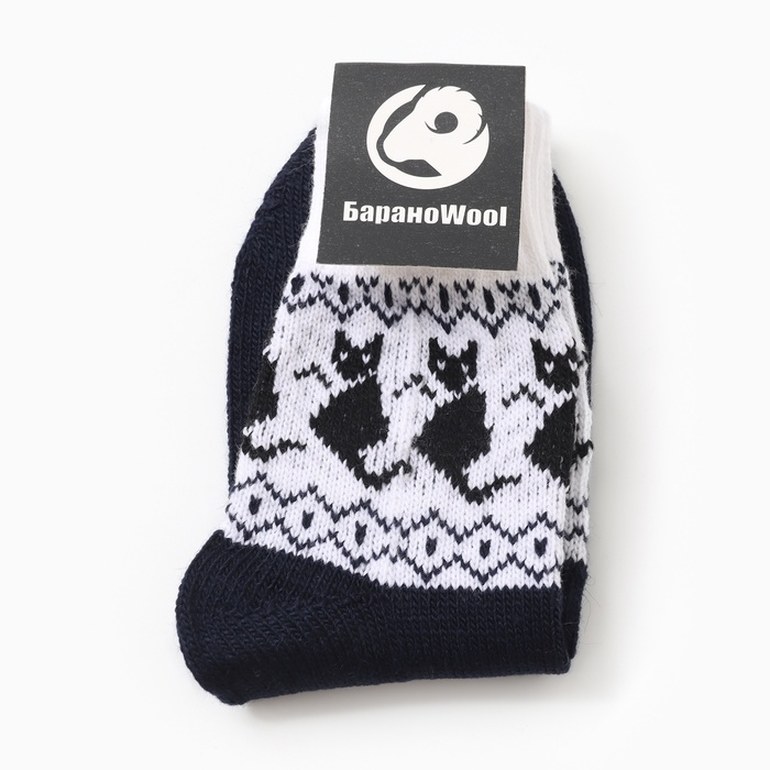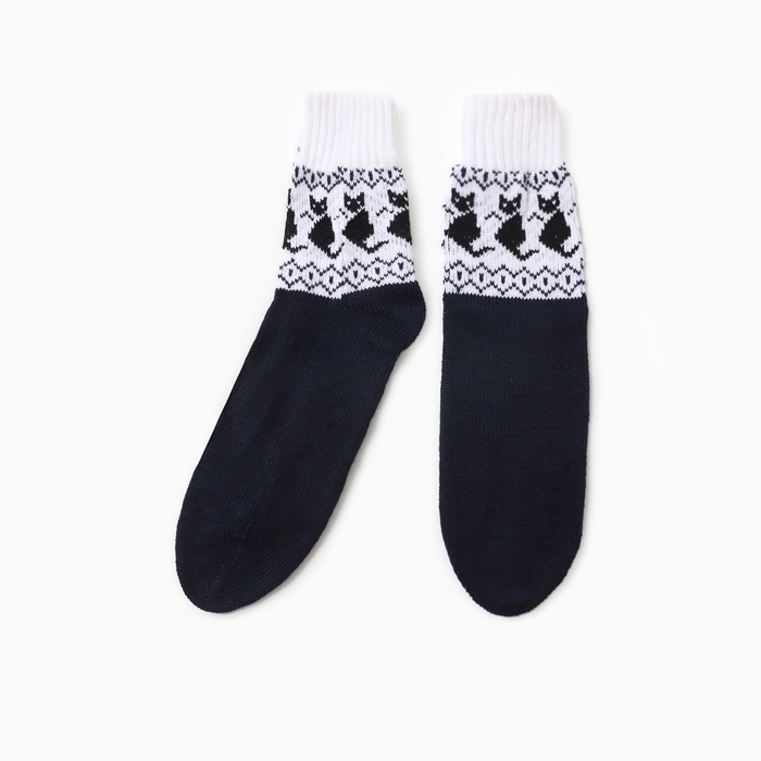 Носки женские шерстяные "Котик", цвет т.синий, р-р 25-27