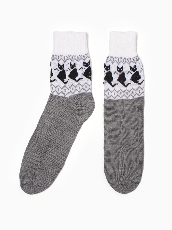 Носки женские шерстяные "Котик", цвет серый, р-р 25-27
