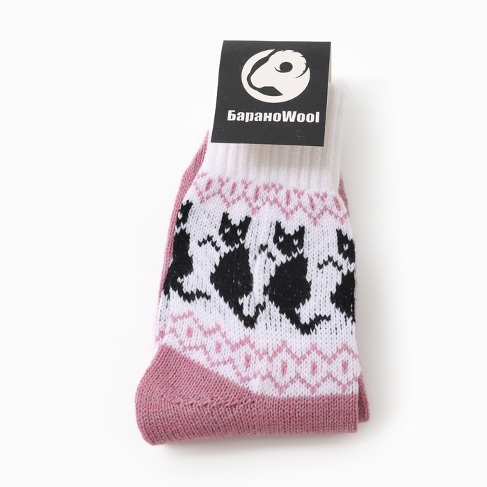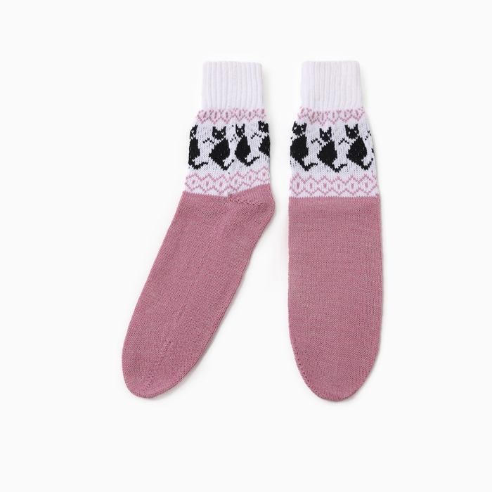 Носки женские шерстяные "Котик", цвет сиреневый, р-р 25-27